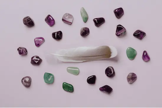 Las piedras canalizan energías sutiles para equilibrar los chakras, mientras que las plumas aportan una caricia ligera que relaja profundamente y despierta los sentidos.